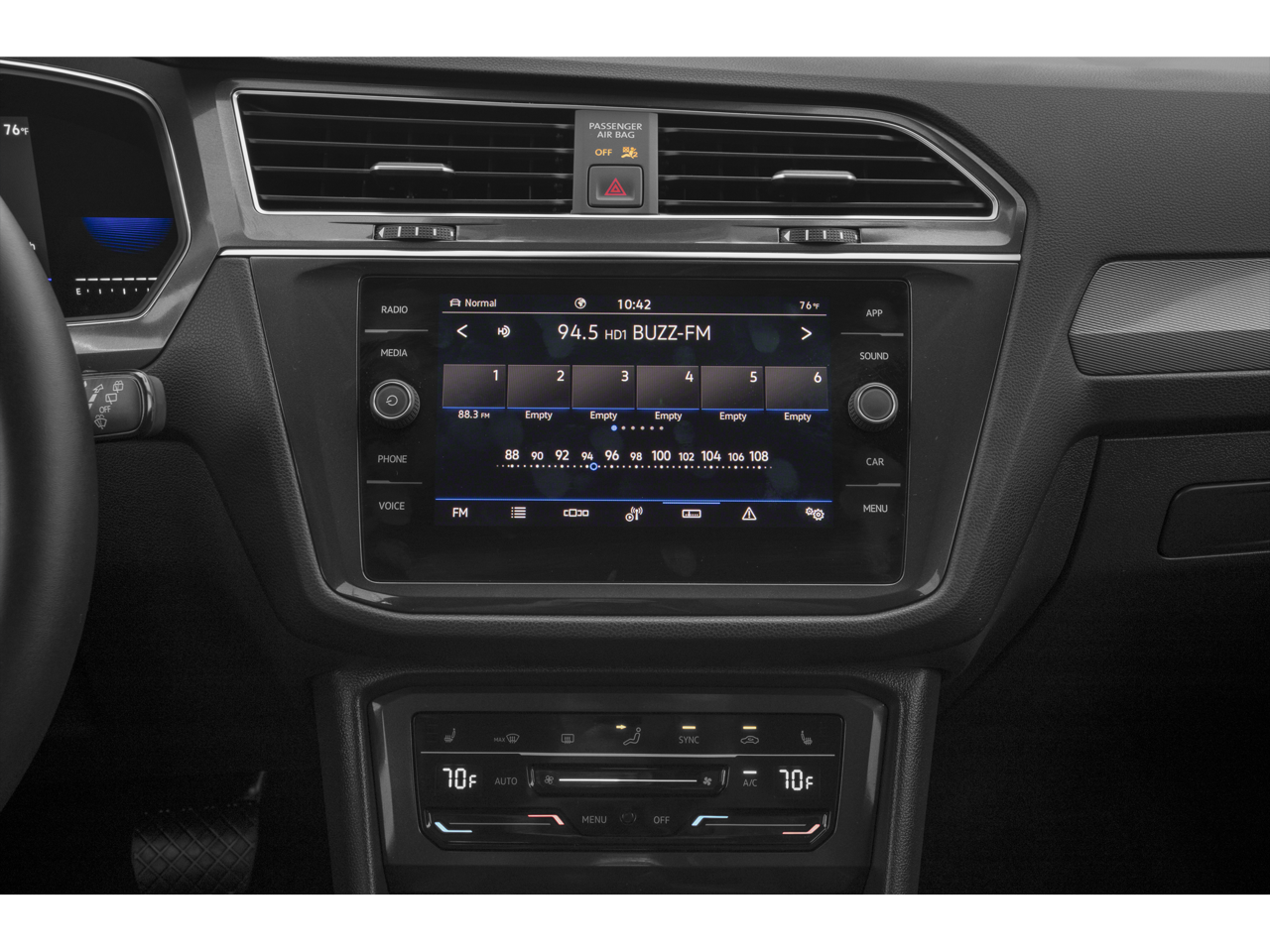 - Radio: MIB3 Composition Media AM/FM/HD -inc: 8" touchscreen, WMA/MP3/FLAC player w/USB-C, voice control, 6-speaker sound system, Qi wireless inductive charger (for compatible mobile phones and accessories), App-Connect smartphone integration (w/Apple CarPlay, Android Auto and MirrorLink) via USB, Wireless App-Connect smartphone integration (for compatible devices) w/multi-phone pairing capability, capability for in-vehicle 4G LTE enabled Wi-Fi (cellular data plan required; includes limited trial), capability for VW Car-Net services (capabilities for certain services vary; requires enrollment or subscription), Bluetooth® connectivity (for compatible devices) and SiriusXM w/360L (w/3-month free trial subscription; 360L services require acceptance of Car-Net terms)